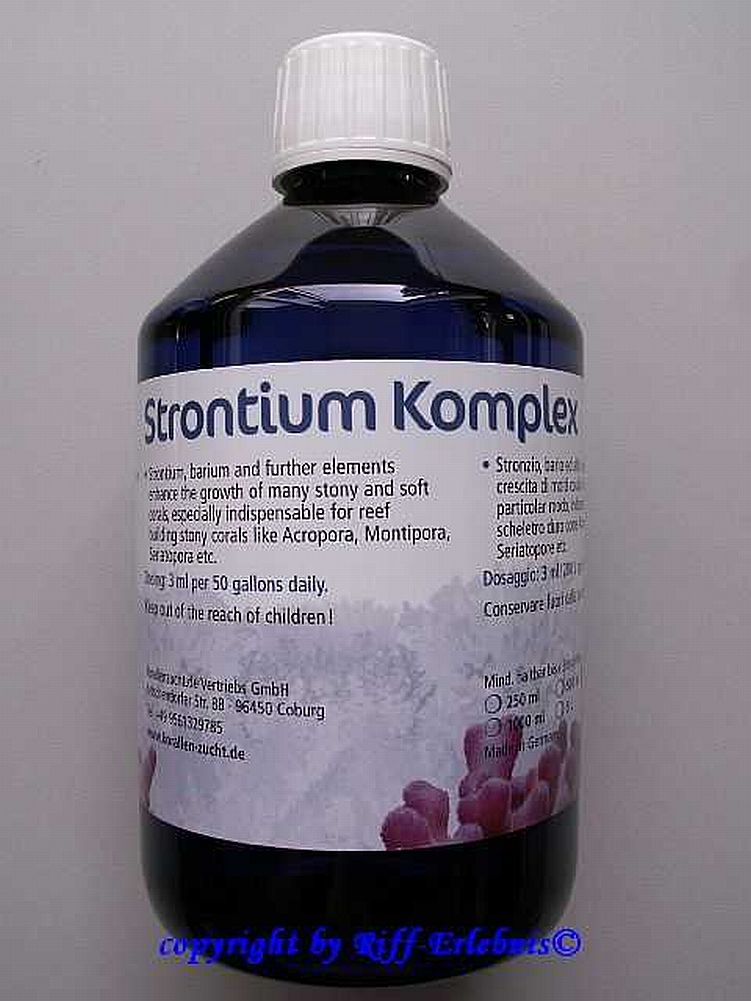 Strontium, Barium und weitere Elemente wirken auf viele Stein- und Weichkorallen äußerst wachstumsfördernd, speziell für riffbildende Steinkorallen wie Acropora, Montipora, Seriatopora u.s.w. sind sie nach Test`s von Korallenzucht unverzichtbar.